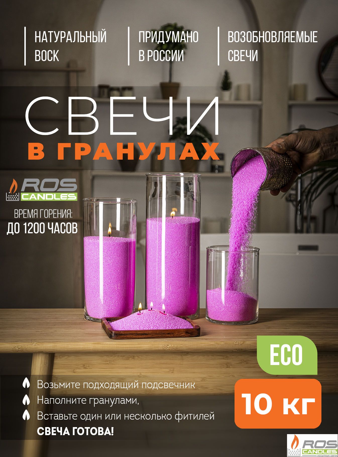 Насыпные свечи в 3 раза экономнее, чем парафиновые, восковые, столовые или любые другие декоративные свечи.