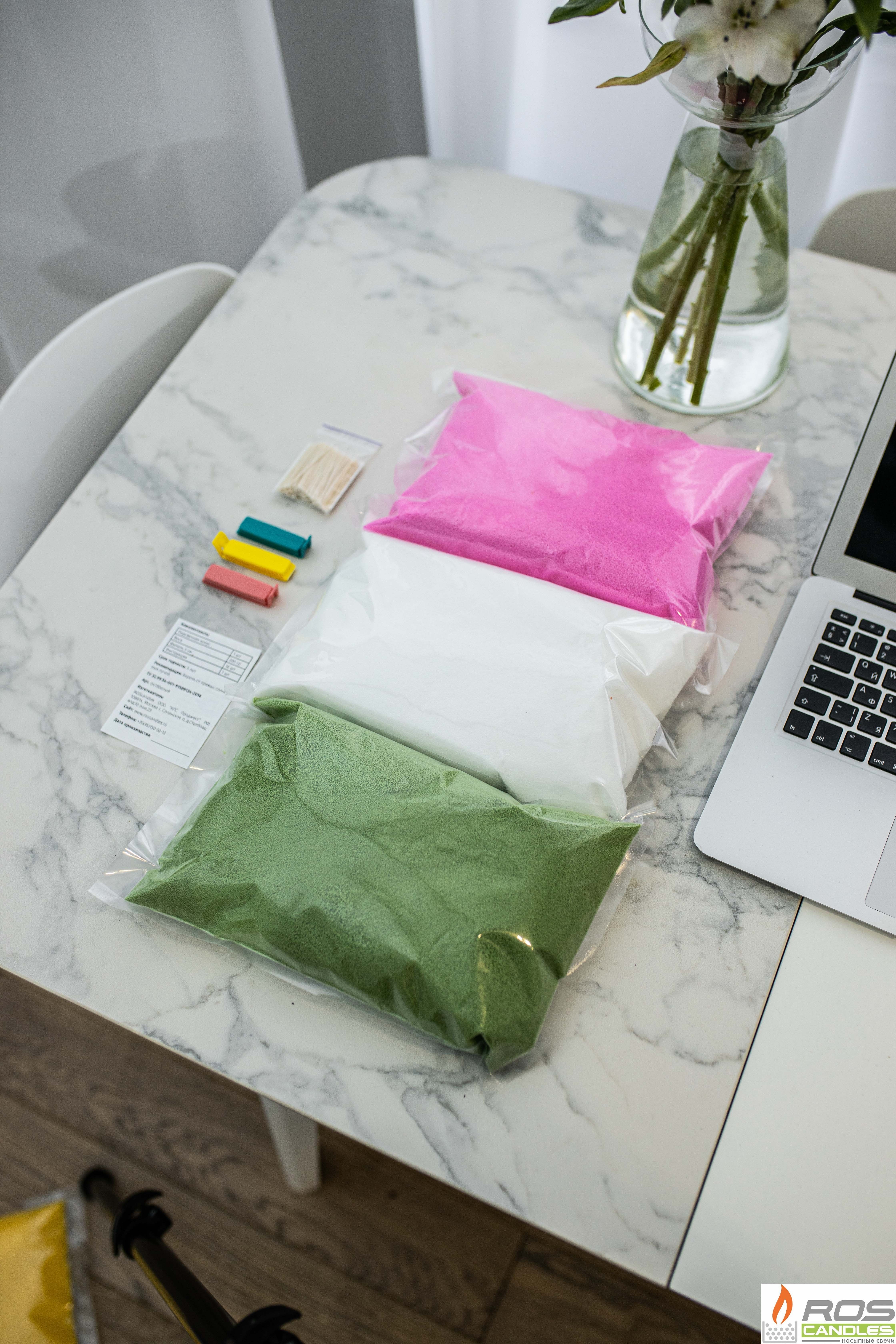 Набор цветных свечей: розовые "Розовый" - 1кг; зеленые "Зелёный" - 1кг; белые "Бизнес" - 1кг