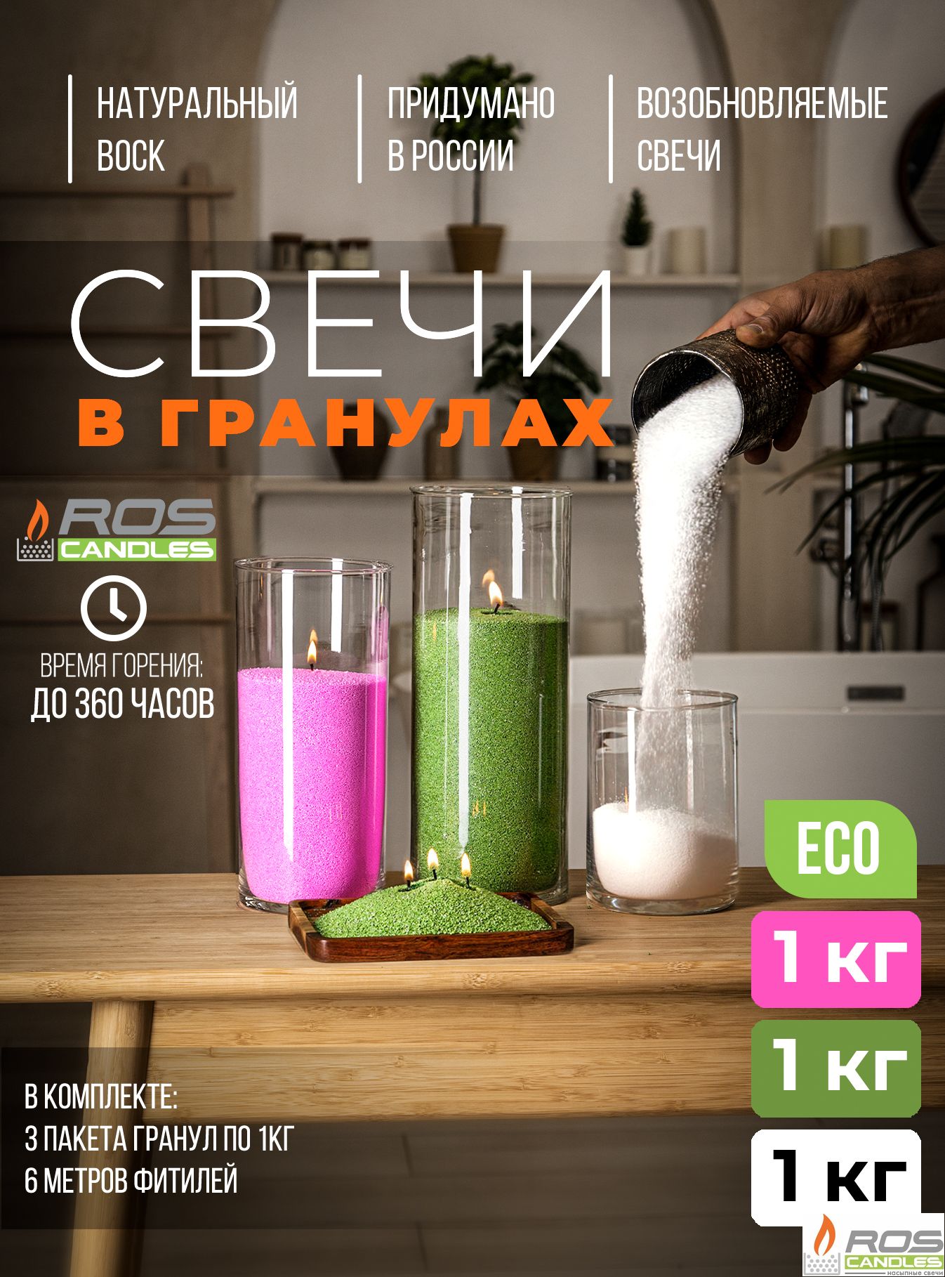 Насыпные свечи - это интерьерные свечи нового поколения из органических гранул размером 1-2мм, полученных из плодов масличной пальмы.