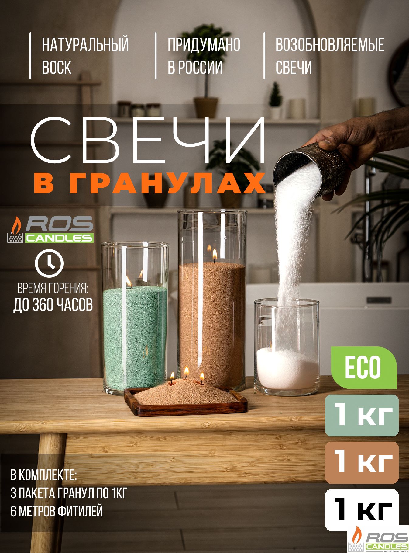 Комплект: насыпные свечи 3 пакета по 1 кг +фитиль 6 метров