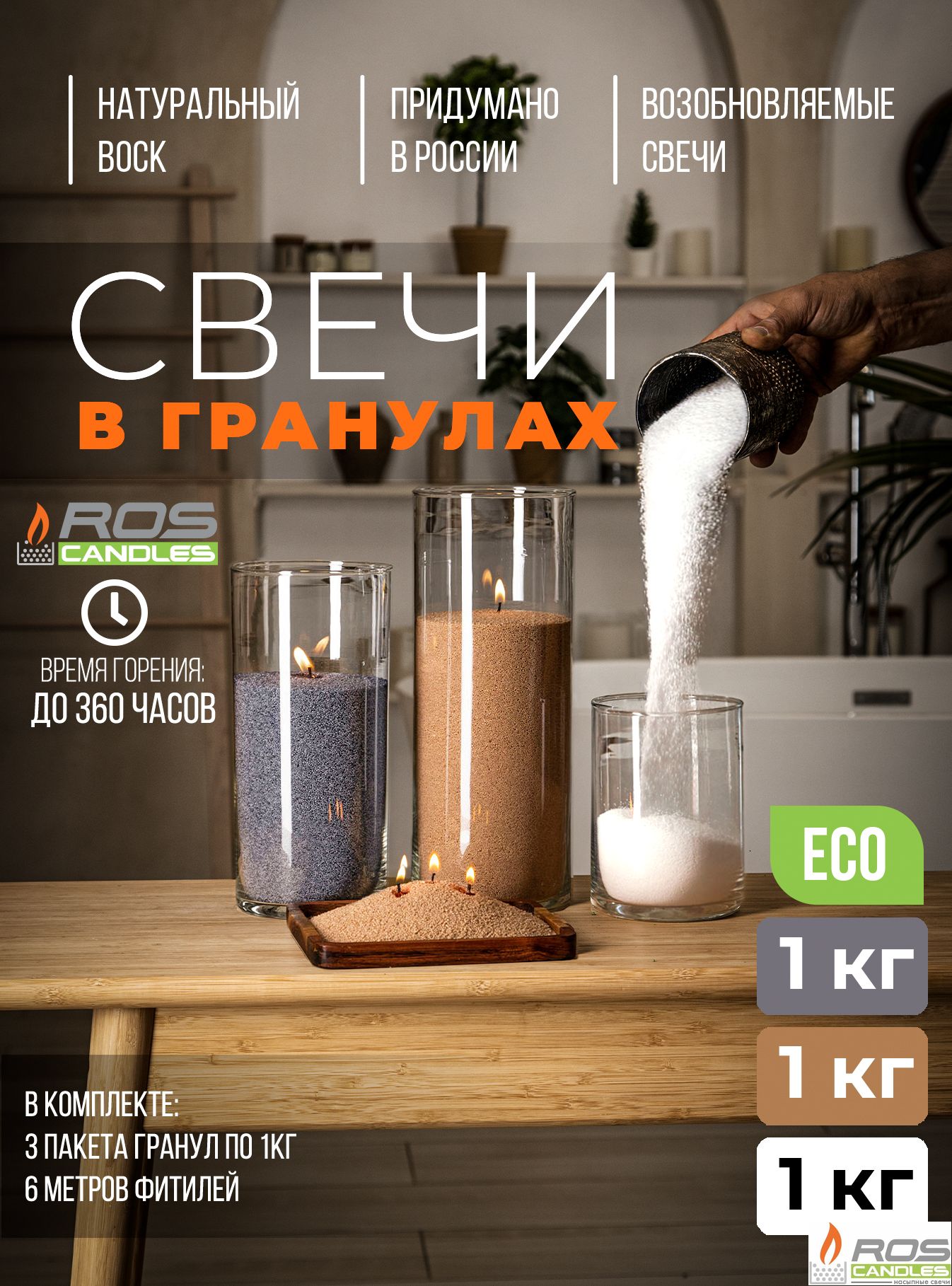 Насыпные свечи - это интерьерные свечи нового поколения из органических гранул размером 1-2мм, полученных из плодов масличной пальмы.