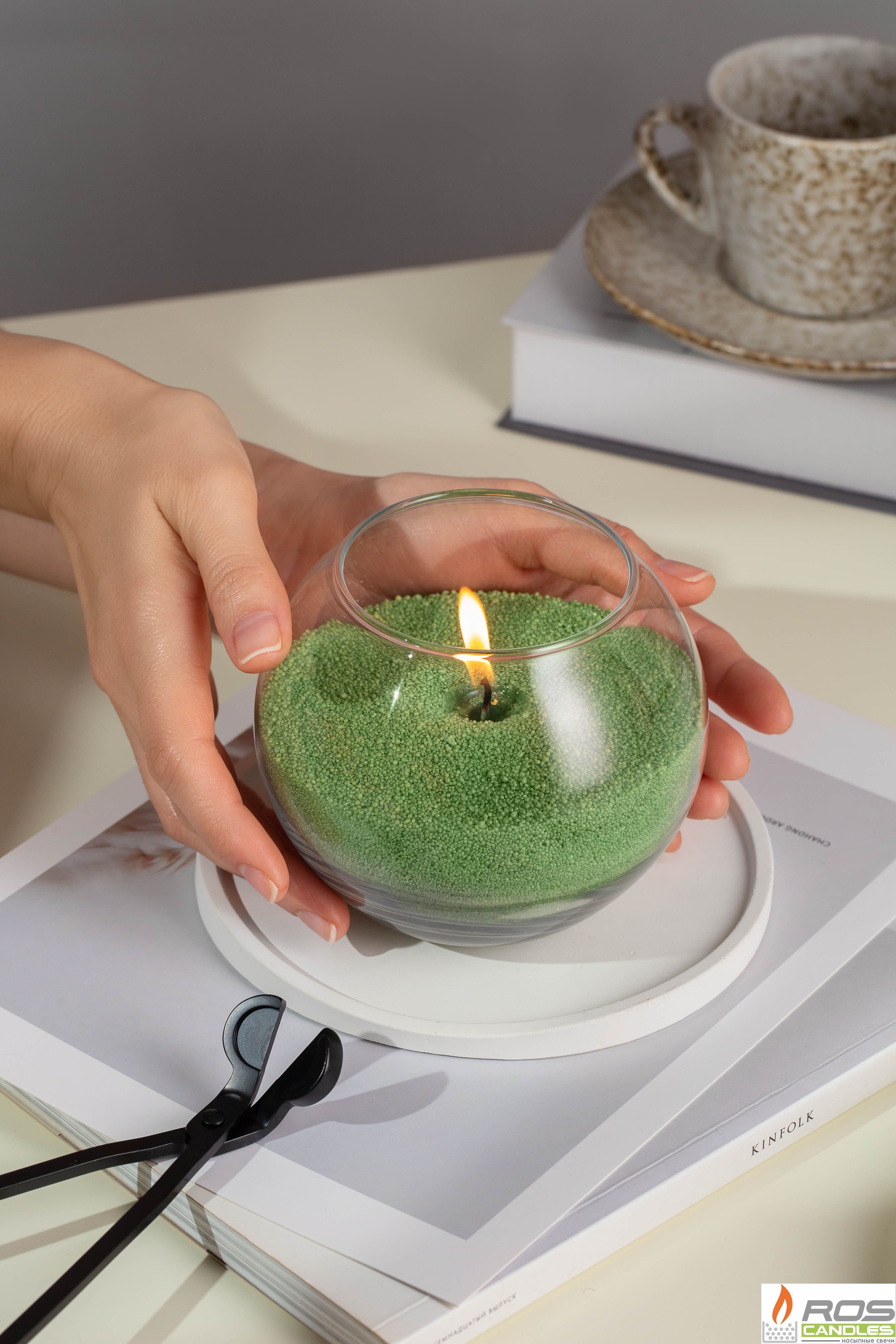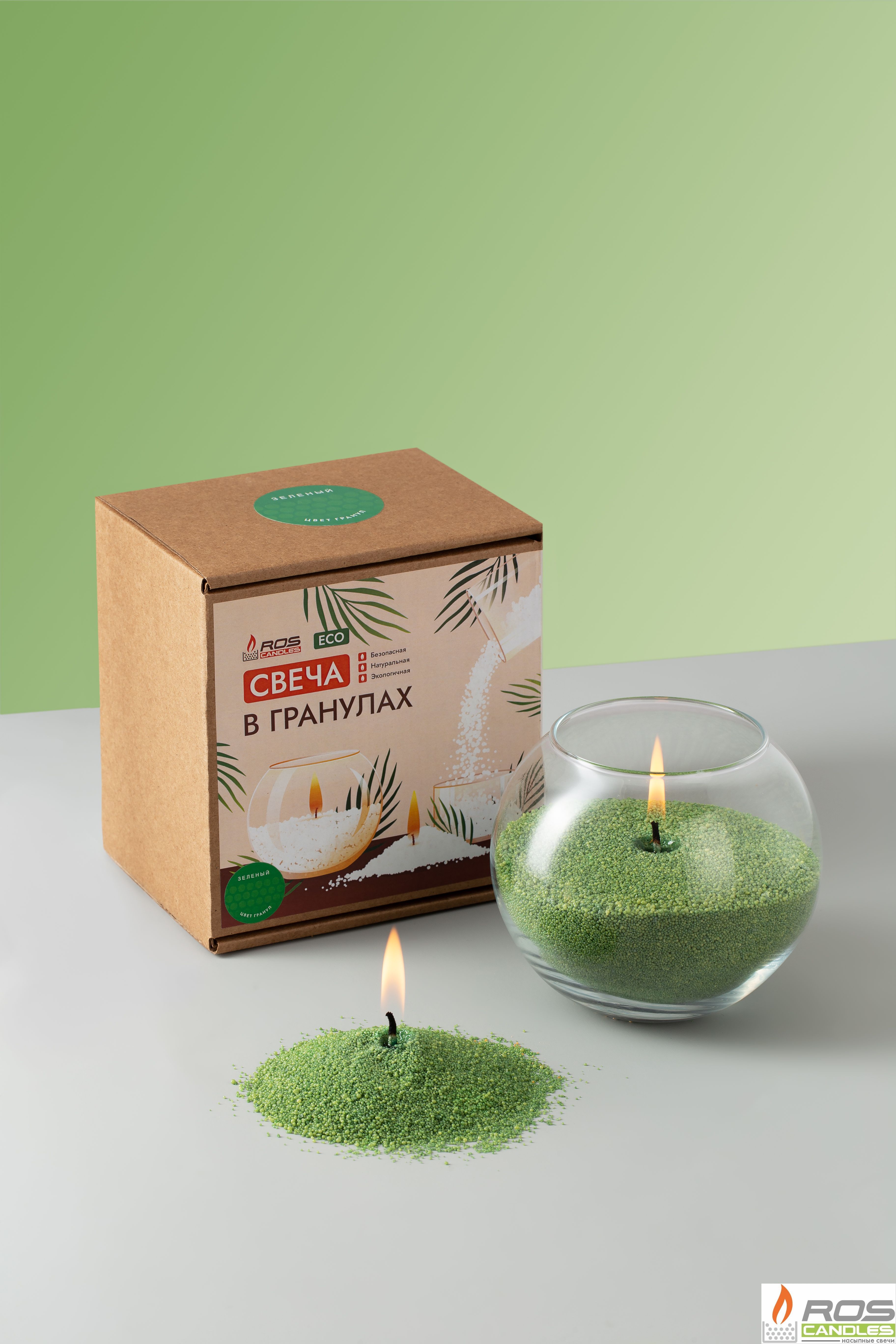 - воск зеленый "RosCandles" 300 гр для наполнения подсвечника, как на фото (на 45часов горения).