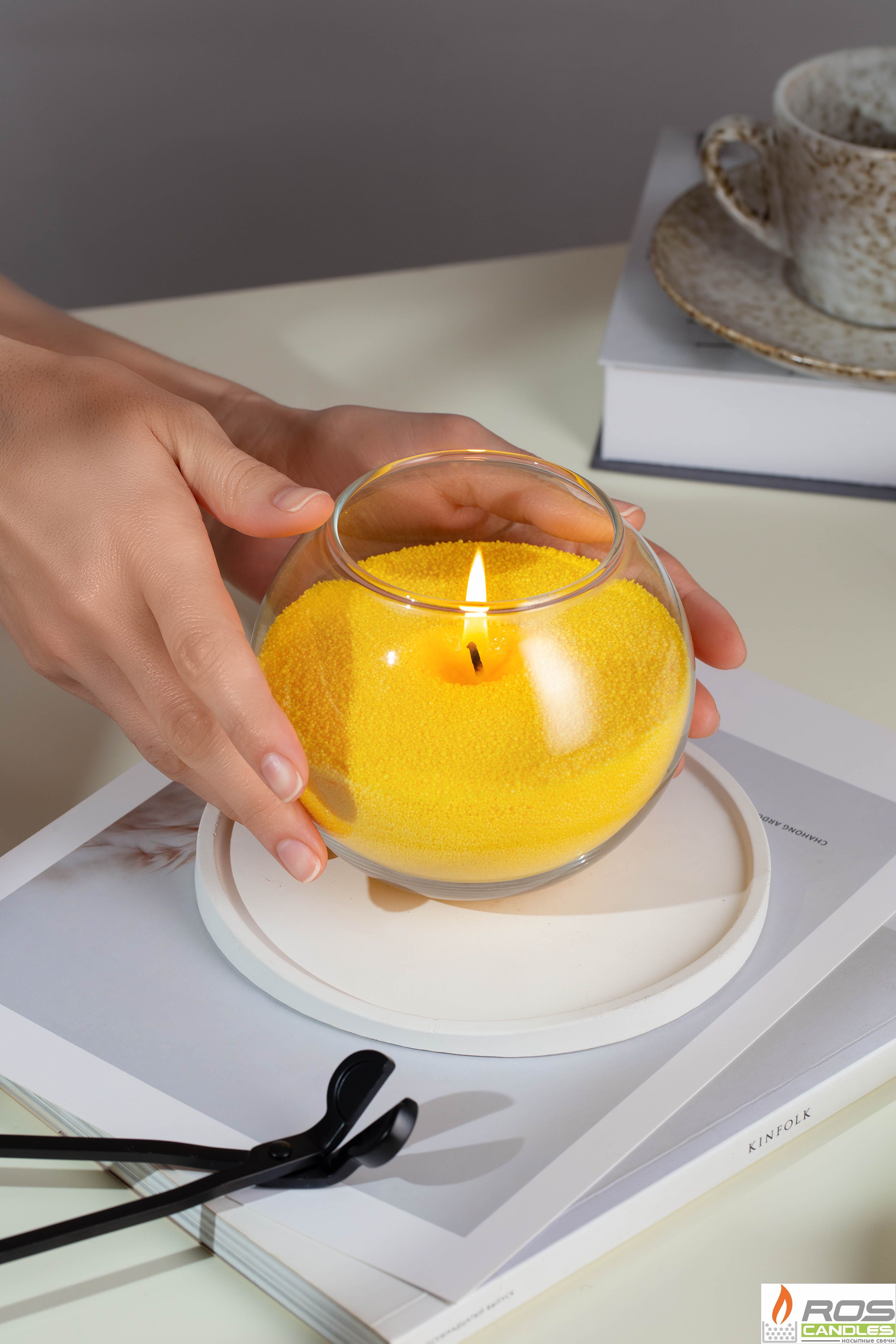 - воск желтый "RosCandles" 300 гр для наполнения подсвечника, как на фото (на 45часов горения).
