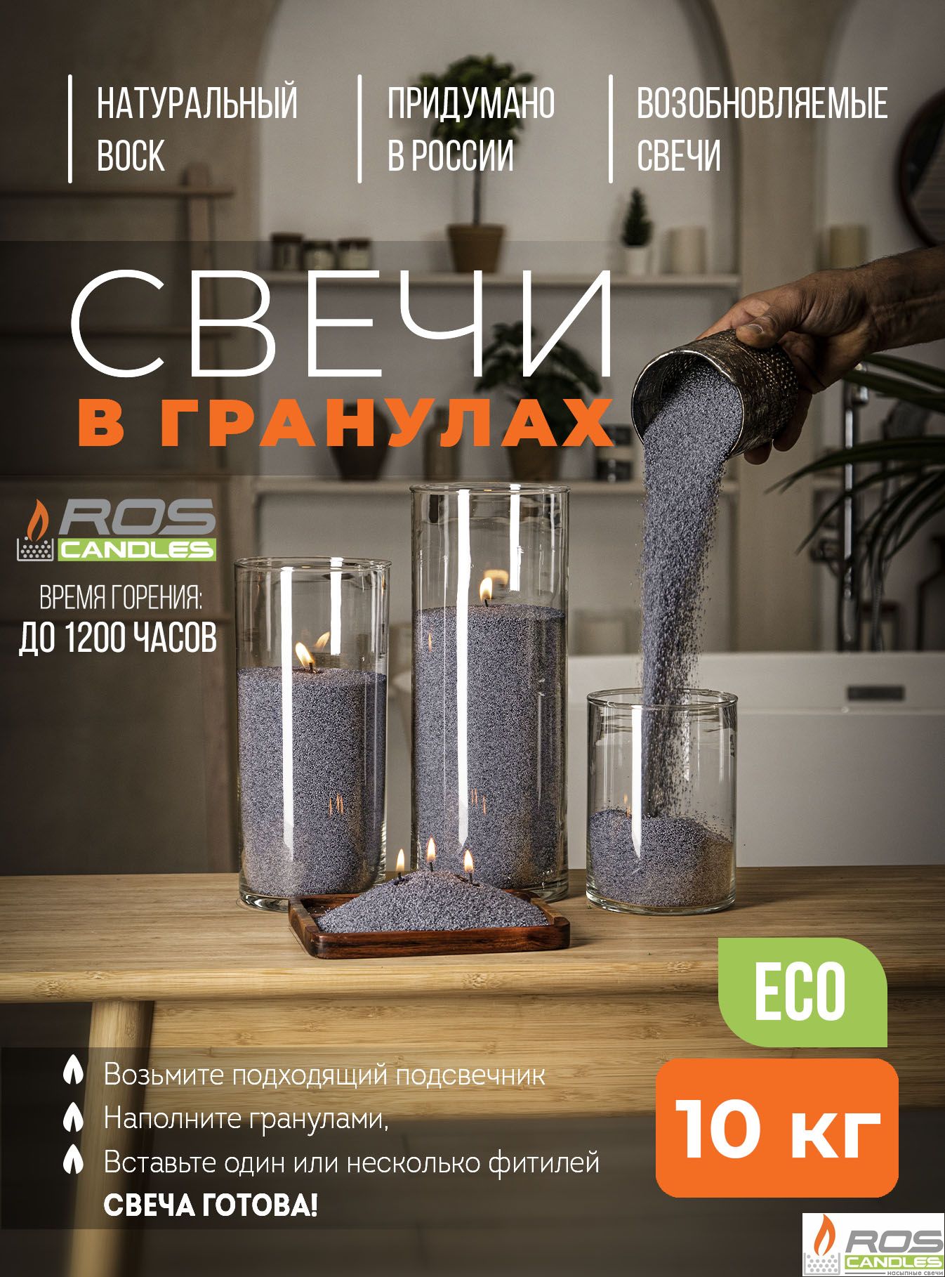 Насыпные свечи в 3 раза экономнее, чем парафиновые, восковые, столовые или любые другие декоративные свечи.