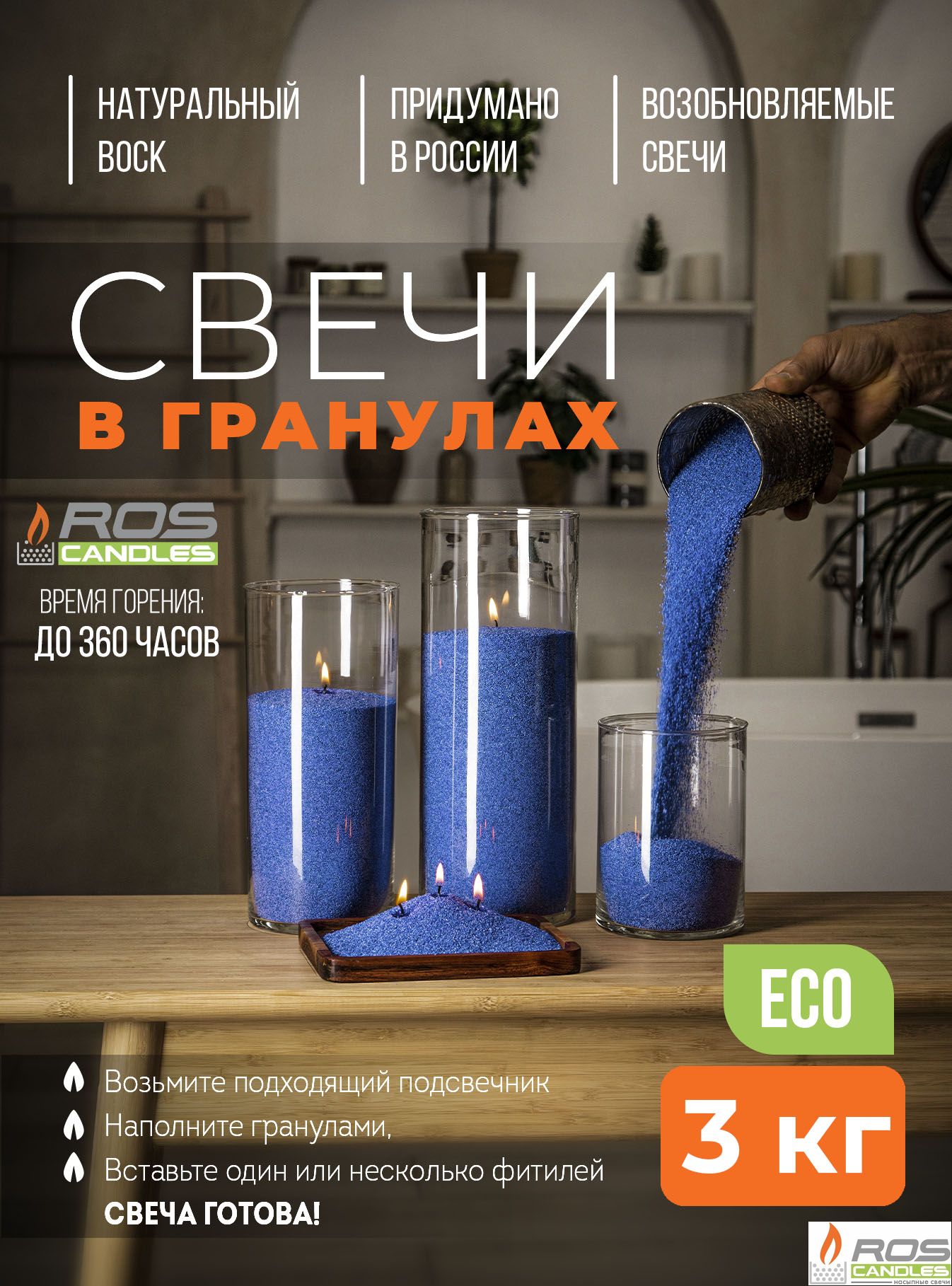 Насыпные свечи в 3 раза экономнее, чем парафиновые, восковые, столовые или любые другие декоративные свечи. В среднем стоимость горения одной насыпной свечи около 8руб/час.