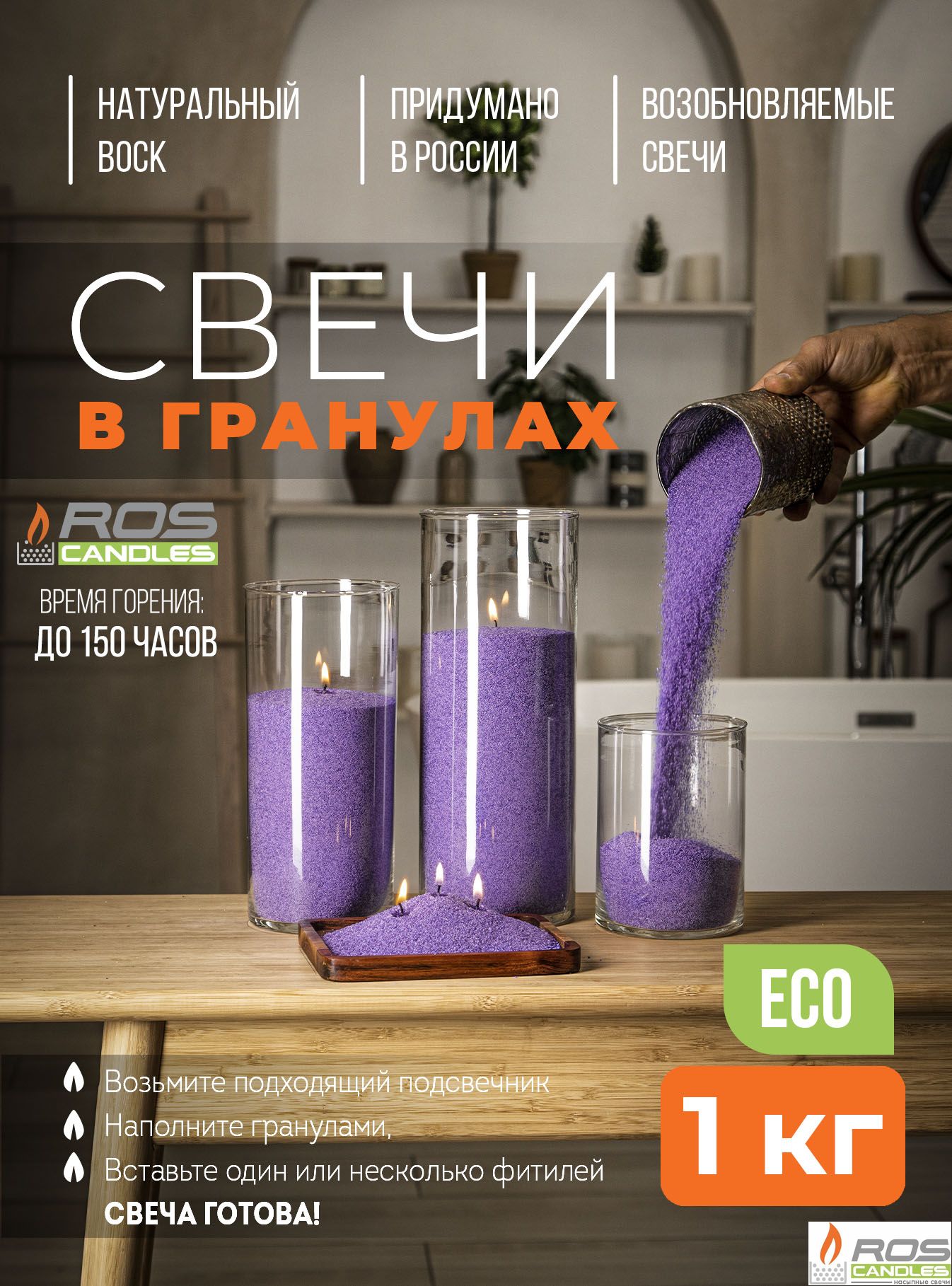 Насыпные свечи RosCandles сиреневые "Сиреневый" - 1 кг