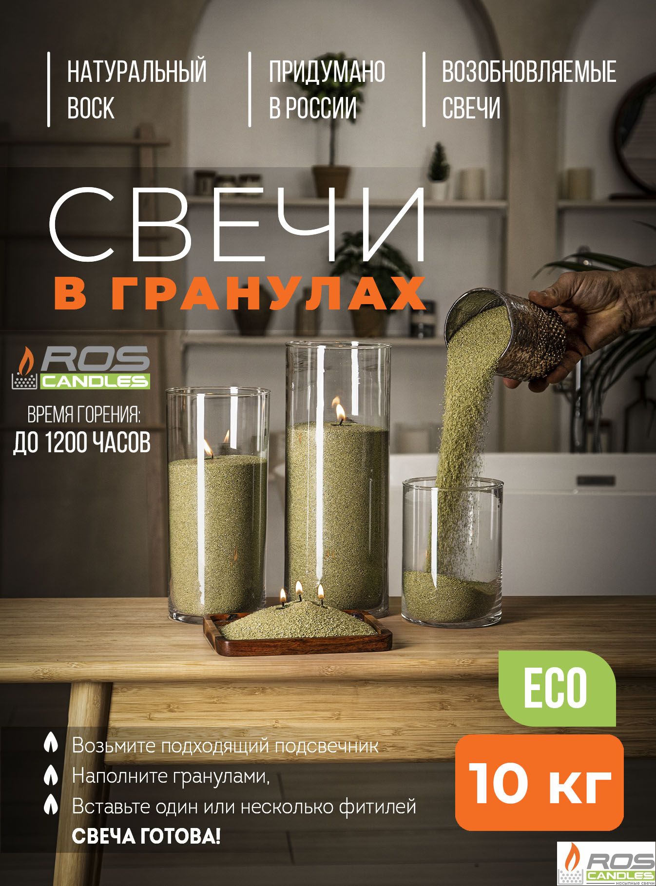 Насыпные свечи в 3 раза экономнее, чем парафиновые, восковые, столовые или любые другие декоративные свечи.