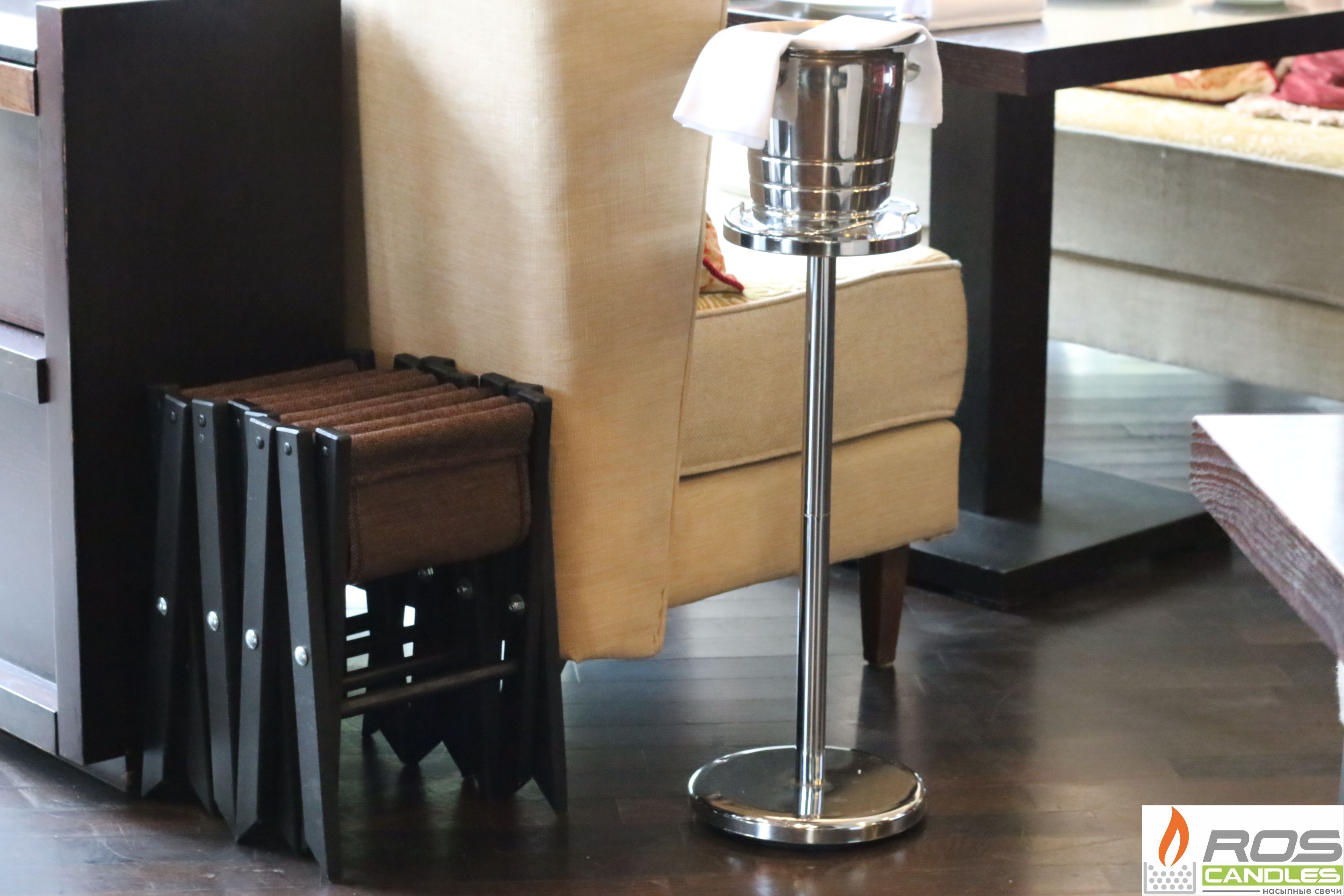 Актуальный атрибут любого современного интерьера. Складная подставка для сумок хорошо подходит для использовании в ресторане, отеле, конференц зале или салоне красоты. Это такая же приятная и полезная мелочь, как предложить повесить пиджак на плечики. Или теплая, влажная, махровая салфетка перед приемом пищи. Согласитесь, ведь из мелочей и складывается высокий сервис.
